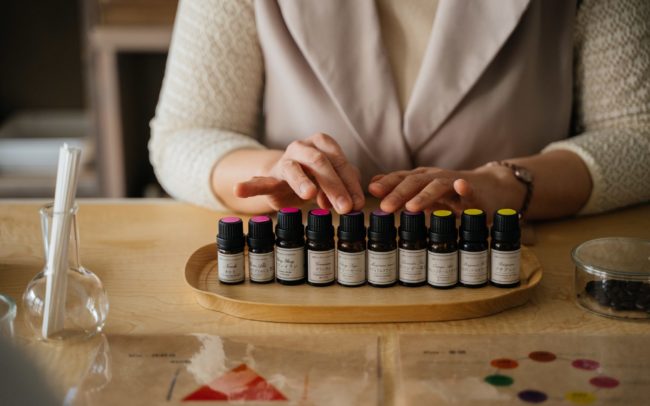 「香りのブレンドワークショップ」では、植物から抽出された天然エッセンシャルオイルを使って、あなただけの香り(フレグランス)作りを楽しみます。