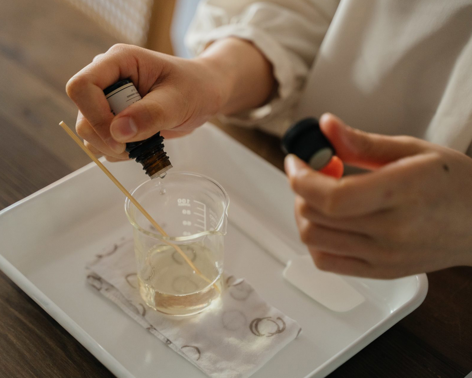 Create your own fragrance from a selection of essential oils on the theme of ‘sleeping’.