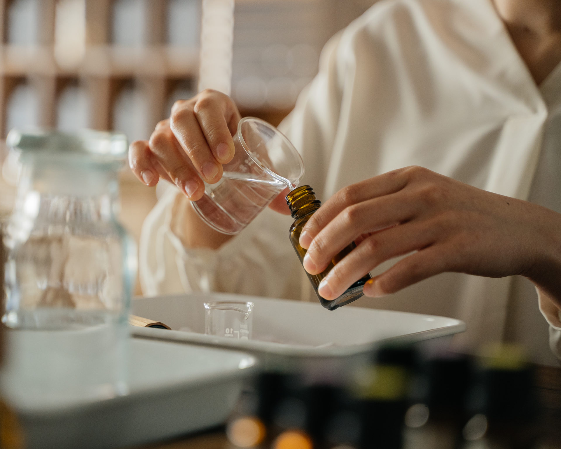 Create your own fragrance from a selection of essential oils on the theme of ‘bathing’.