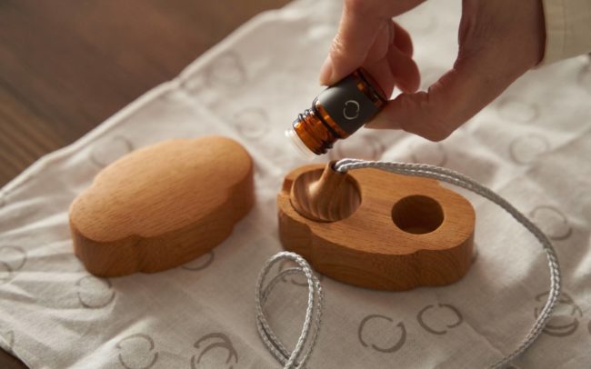 3つのテーマに沿って調香したエッセンシャルオイルと、木彫の容器に入ったアロマクラフトをお持ち帰りいただけます。